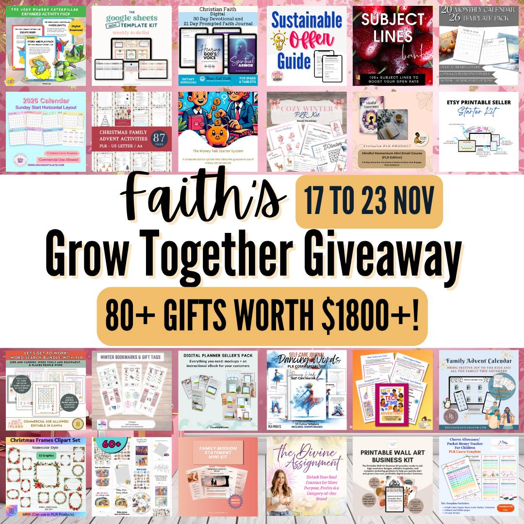 Hi Reader! I’m beyond excited to share something that’s been in the works for months — Faith’s Grow Together Giveaway is officially LIVE! I know… there are a LOT of bundles out there. Some are good. Some are overwhelming. Some you download and never touch again. 😅 But I just found one that’s actually worth opening — because it’s not just another bundle. ✅ 80+ FREE resources 👉 SIGN UP here. I’m honored to be a contributor. I’ve contributed my Winter Bookmarks & Gift Tags. There’s something for almost everyone: 🧠 Biz owners → PLR templates, email builders, planners, checklists BUT HERE’S WHAT MAKES THIS ONE DIFFERENT ⬇️ Along with the free bundle, there’s an optional $9 Extended Access Pass — definitely worth it for the extra time! For just nine dollars, you also get: ✨ Replays to the live co-working sessions 👉 YOU CAN GRAB EVERYTHING here. Enjoy this opportunity! Melinda