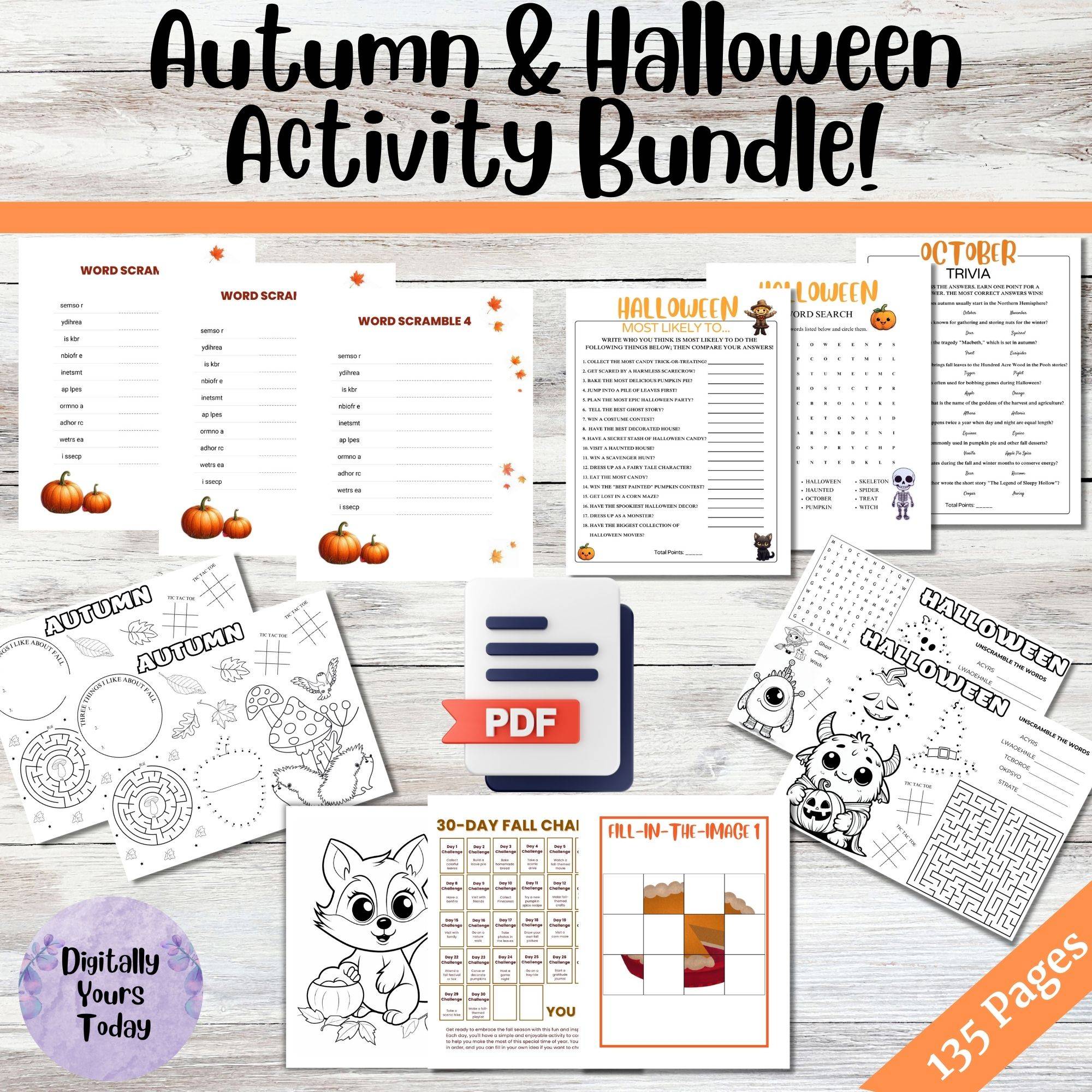 The Autumn & Halloween Bundle includes over 100 printable activities, games, and placemats — perfect for parents, teachers, or anyone hosting fall festivities. Just print and enjoy cozy, screen-free fun all season long.