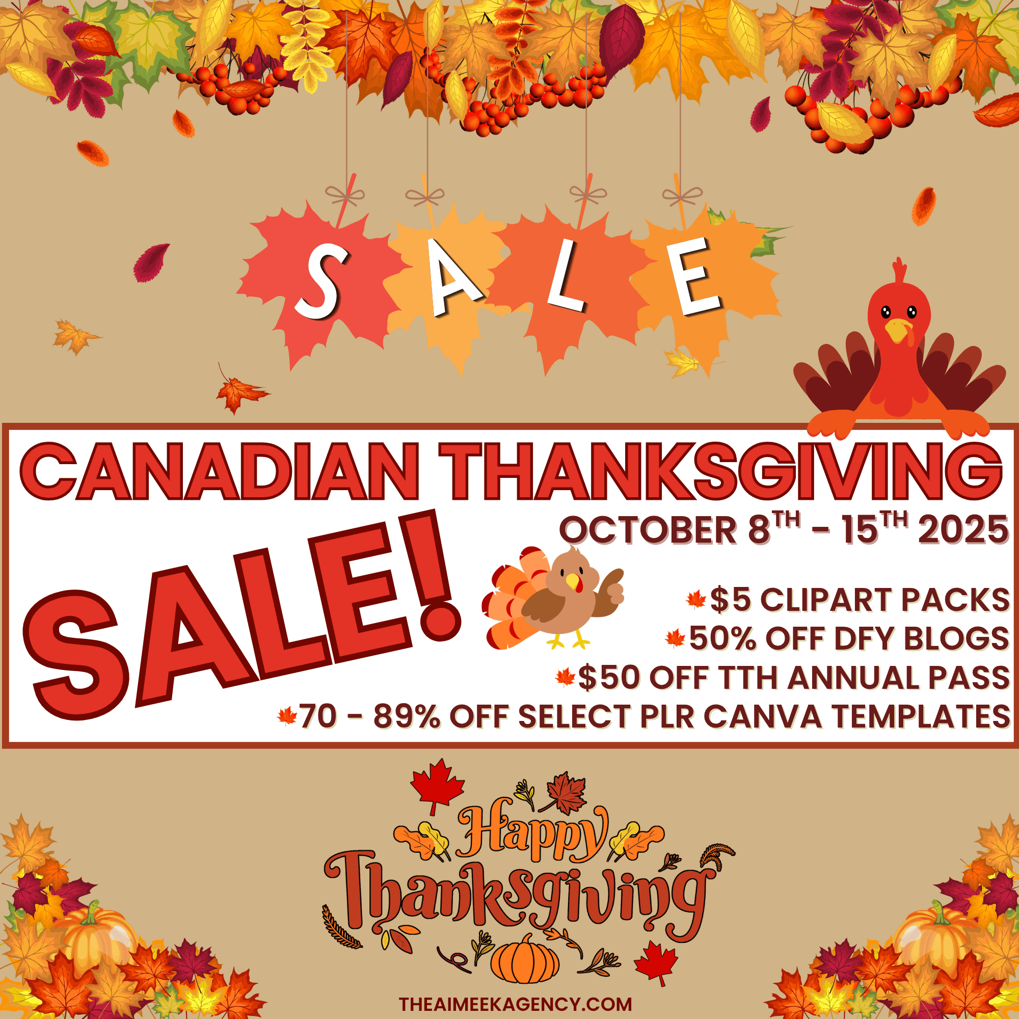 2) Aimee from the Aimee K. Agency celebrates Thanksgiving in October, and is having a big Canadian Thanksgiving Sale for the next week!
